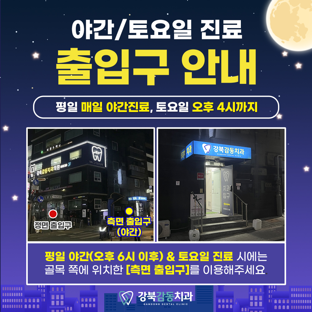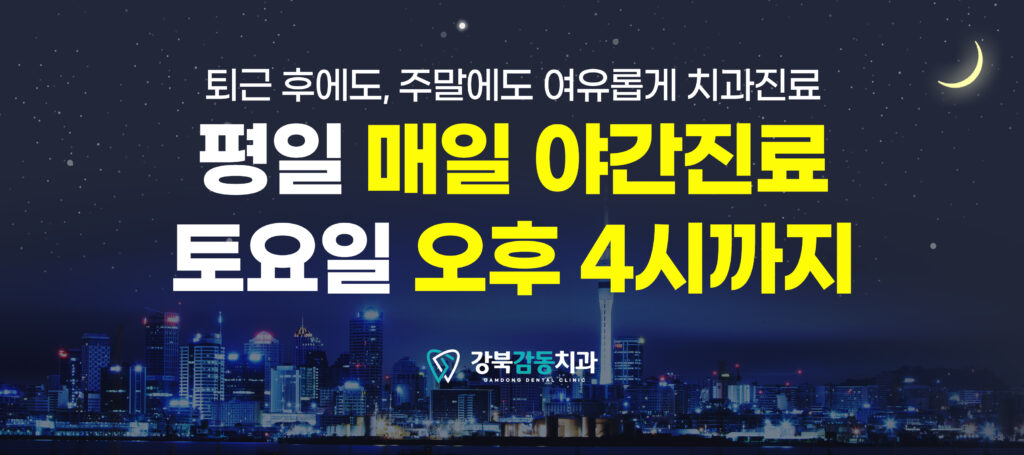 이런 고민을 조금이라도 덜어드리고 싶어서, 강북감동치과는 2026년부터 평일 매일 야간진료를 시행하고 있어요.